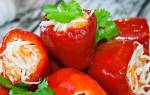 Фаршированные плоды укладывают плотно в банки и заливают не остывшим рассолом, приготовленным из воды и уксуса в пропорции 1:1. Через 4 дня закуску можно употреблять.