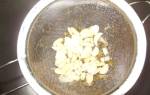 - Растопить жир, выложить измельченный лук, чеснок и потушить до мягкости.